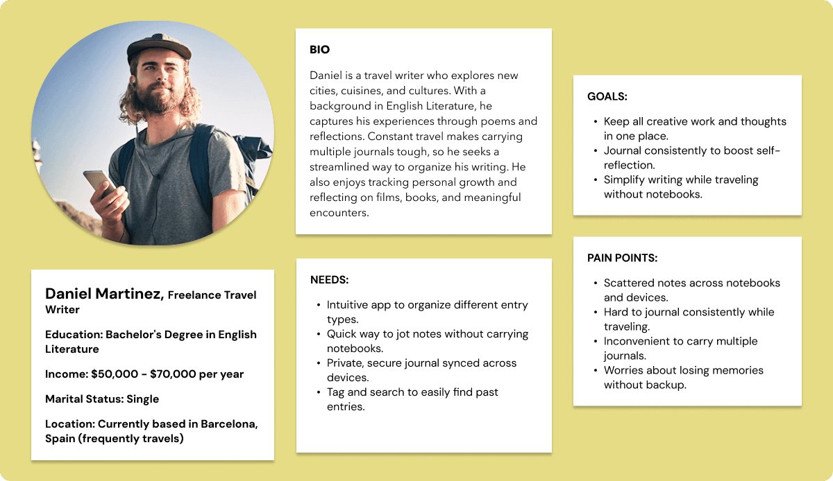 I interviewed 5 people who journal regularly. My goal was to uncover common pain points and habits: